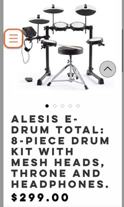 Alesis E-DRUM TOTAL: 8-piece drum kit with mesh heads With Stool And Drum Sticks$100Spring Valley, CA