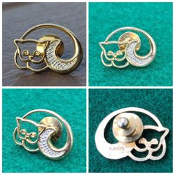 Vtg AVON Signed Gold Tone Rhinestone Cat Pin$9Claremont, CA