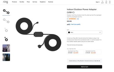 Ring Indoor/Outdoor Power Adapter (USB-C) Outdoor Cam Plus, Stick Up Cam, Spotlight Cam Plus, Spotlight Cam Pro - Black$30Fullerton, CA
