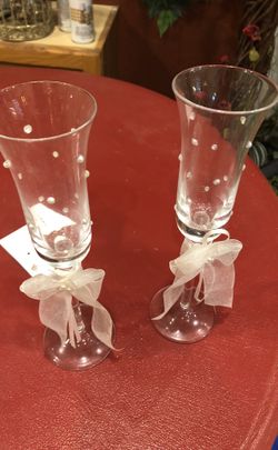 Two oversize margarita glasses and two champagne glasses for a wedding. Make an offer 🤗$10Westworth Village, TX