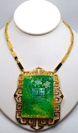 VINTAGE 1970’s VENDOME VERY BOLD ASIAN JADE GOLD NECKLACE $75Orange, CA