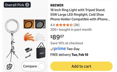 Neewer 20-Inch Ring Light – Perfect for Photography, Video, and Content Creation - Stand missing$50Coram, NY
