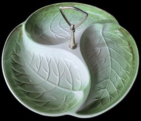 Vintage Royal Haeger Cabbage Leaf Tray: Green Ceramic Divided Serving Dish$20Saint Paul, MN