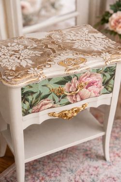 Vintage Floral Side Table | Nightstand | Cottage / French Style/ Statement Piece 🌸$120Eleven Mile, AZ