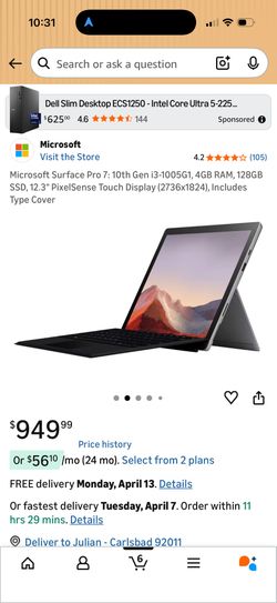 Surface Pro 7 Laptop/tablet with Keyboard$450Carlsbad, CA
