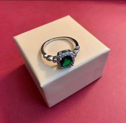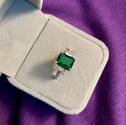 Size 10 Lab Created Emerald Ring In Sterling Silver 3 Stone Ring Engagement Birthday Anniversary $40Richmond, VA