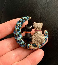 Black And White Cat On Crescent Moon Brooch $14Richmond, VA