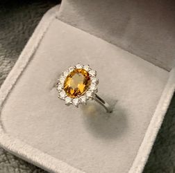 ✨ November Birthstone Brand New Natural Citrine & Clear CZ Ring Size 8 In Sterling Silver ✨$48Richmond, VA
