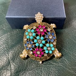 Beautiful vintage style large turtle brooch multicolor daisy Turquoise bead$22Richmond, VA