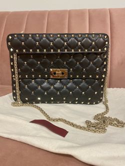 Valentino Authentic Rockstud Medium Bag Black And Gold$1,500Aventura, FL
