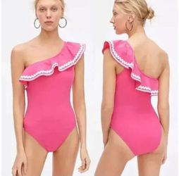 J.Crew One shoulder ruffle one piece swimsuit Barbie pink feminine size 0$60Grand Prairie, TX