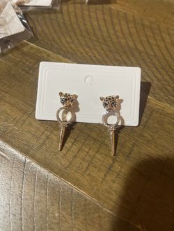 Gold-tone leopard-head Rhinestone studded drop earings$40Chula Vista, CA