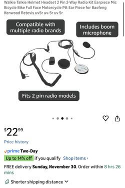 Walkie Talkie Helmet Headset 2 Pin 2-Way Radio Kit Earpiece Mic Bicycle Bike Desert RZR GMRS Camping RV Motorcycle Ptt Ear Piece Baofeng uv5r uv-5r$20Menifee, CA