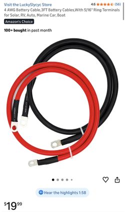 AWG Battery Cables, Gauge Power Inverter Cables with 5/16" Ring Terminals for Camper Trailer Overland QQ Solar, RV, Auto, Marine Car, Boat Length 3 ft$10Menifee, CA