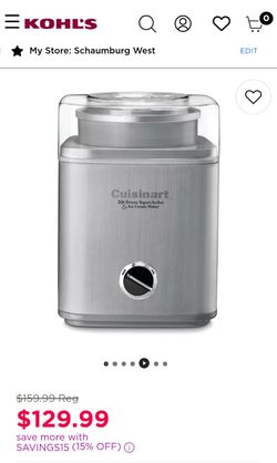 Cuisinart ICE-30BC Pure Indulgence 2-Quart Frozen Yogurt-Sorbet and Ice Cream Maker$70Hanover Park, IL