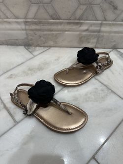 Size 7.5 BCBG Black and Tan with Gold Studs Strappy Sandals$15Willowbrook, IL
