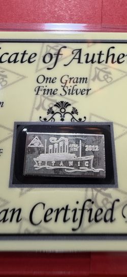 Rare Pure Silver 1 Gram Bar Titanic Edition with Certificate of Authenticity$40Hialeah, FL