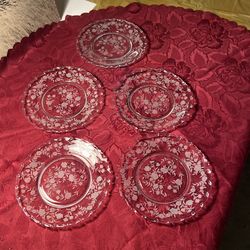 VTG. Fostoria Chintz On Baroque Clear 8 3/8” Luncheon Plates. Crystal Glass. Etched Floral. $37Grandview, MO