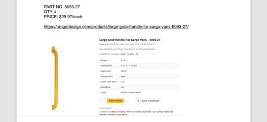 Ranger Design Large Grab Handle For Cargo Van$29Boca Raton, FL