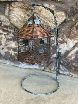 Vintage Metal Ivy Wicker Bird House And Matching Stand 16”height $30San Jose, CA