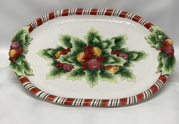 Fitz And Floyd Essentials Peppermint Christmas 3D Serving Oval Platter Large 18”x 13.5” Mint Condition $65San Jose, CA