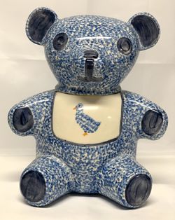 Vintage Gustin Ceramic Blue Stipple Spongeware Teddy Bear Cookie Jar$30San Jose, CA