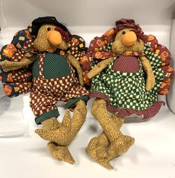 Pair Of Thanksgiving Turkeys Fabric Plushes Harvest Collectibles $35San Jose, CA
