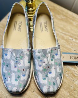 Toms Youth 4 Belmont Slip-On Flats Shoes Grey Lovable Llama Printed Canvas NEW$10Mooresville, NC