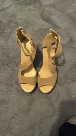 Suade Tan Platform Shoe With Basket weave Heels & Ankle Strap Size 9.5 $50Redford Charter Township, MI