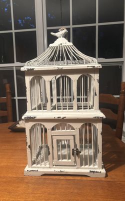 Vintage Shabby White Wood Metal Wire Bird Cage Victorian Style w/ Bird Topper$68Goodlettsvlle, TN