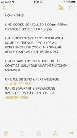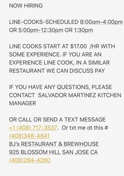 Hi we are hiring dishwasher at blossom hill Bjs$1San Jose, CA