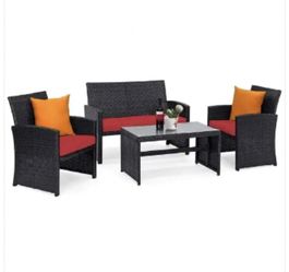 New 4-Pieces Wicker Furniture Patio Set Red Cushion Sofa Table Garden In Box hw63239re$315Downey, CA