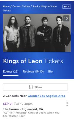 Kings Of Leon (1) GA Ticket Inglewood Forum$200San Fernando, CA