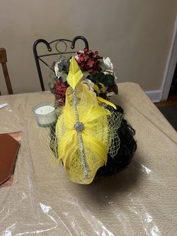 Yellow feathered Pearl-Embellished Women Fascinated Hat$125The Bronx, NY