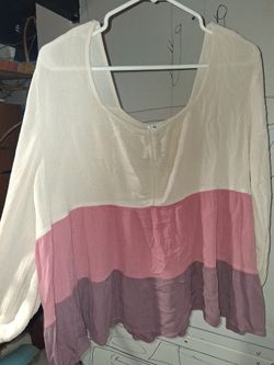 Cato Boho Babydoll Top Plus XL Tiers Ivory Pink Purple Flowy Crinkle P19$25Mitchell, IL