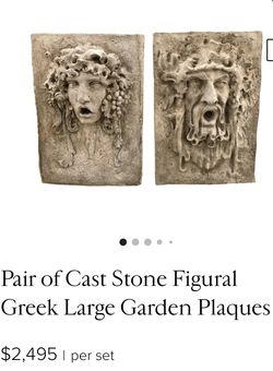 Pair of Cast Stone Figural Greek Large Garden Plaques$2,000San Marcos, TX