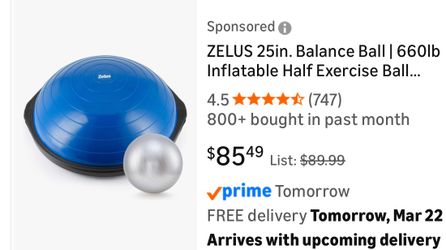 ZELUS 25in. Balance Ball | 660lb Inflatable Half Exercise Ball Wobble Board Balance Trainer w Nonslip Base | Half Yoga Ball Strength Training Equipmen$60Gardena, CA