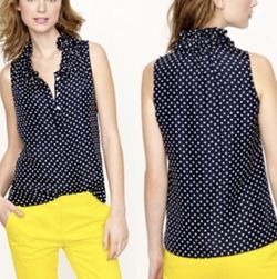 J Crew Women’s 100% Silk Navy White Polka Dots Ruffle Blouse, size 00$25Los Angeles, CA