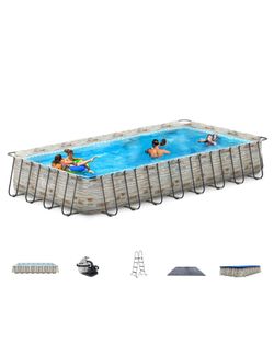 EVAJOY 32ft X 16ft X 52in Metal Frame Swimming Pool Set, Rectangular Above Ground Pool Cover With Sand Filter Pump, Pool Ladder, Ground Cloth For Back$1,500Houston, TX