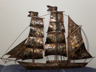 Vintage MCM Brutalist Clipper Ship Boat Metal Sculpture Wall Art (Curtis Jete Style)$350Diamond, IL