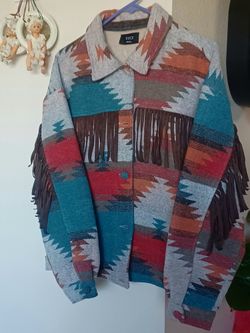 Vici Morrow Aztec Printed Fringe Western Lady Multicolor Jacket Size Small$50Alhambra, CA