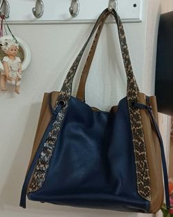 GUC COACH HARMONY HOBO Satchel Navy Blue and Brown with Snakeskin Straps #89578$200Monterey Park, CA