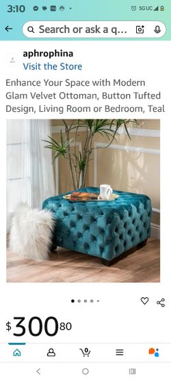 Glam Velvet Ottoman, Button Tufted Design, Living Room or Bedroom, Teal