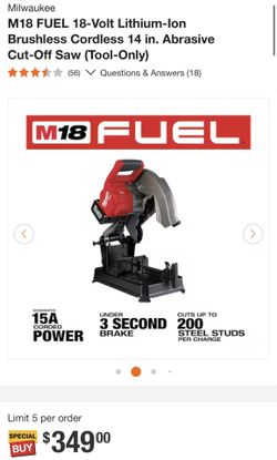 M18 FUEL 18-Volt Lithium-Ion Brushless Cordless 14 in. Abrasive Cut-Off Saw (Tool-Only)$225Brooklyn, NY
