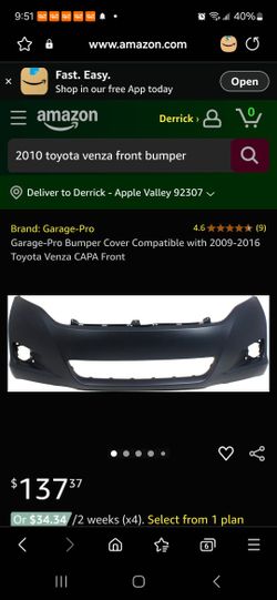 Brand New. Bumper Cover For Toyota Vensa 2012$150Apple Valley, CA