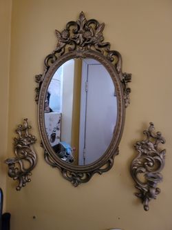 Vintage Hollywood Regency Mirror And Scones. $125Hialeah, FL