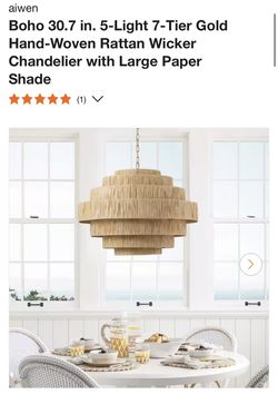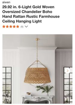 Statement Gold Rattan Chandelier – 30 in. Boho Elegance$200Hillcrest Heights, MD