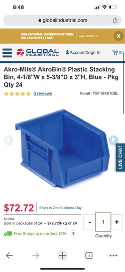 40 Pcs Akro-Mils® AkroBin® Plastic Stacking Bin, 4-1/8"W x 5-3/8"D x 3"H$35Murrieta, CA