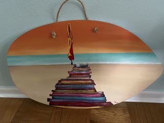 Hand Painted Beach Scene On Old Skim Board By Local Artist $45Myrtle Beach, SC