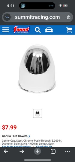 Gorilla Automotive HC202BT Hub Cover, 4.25 Inch, Dome$20Tempe, AZ